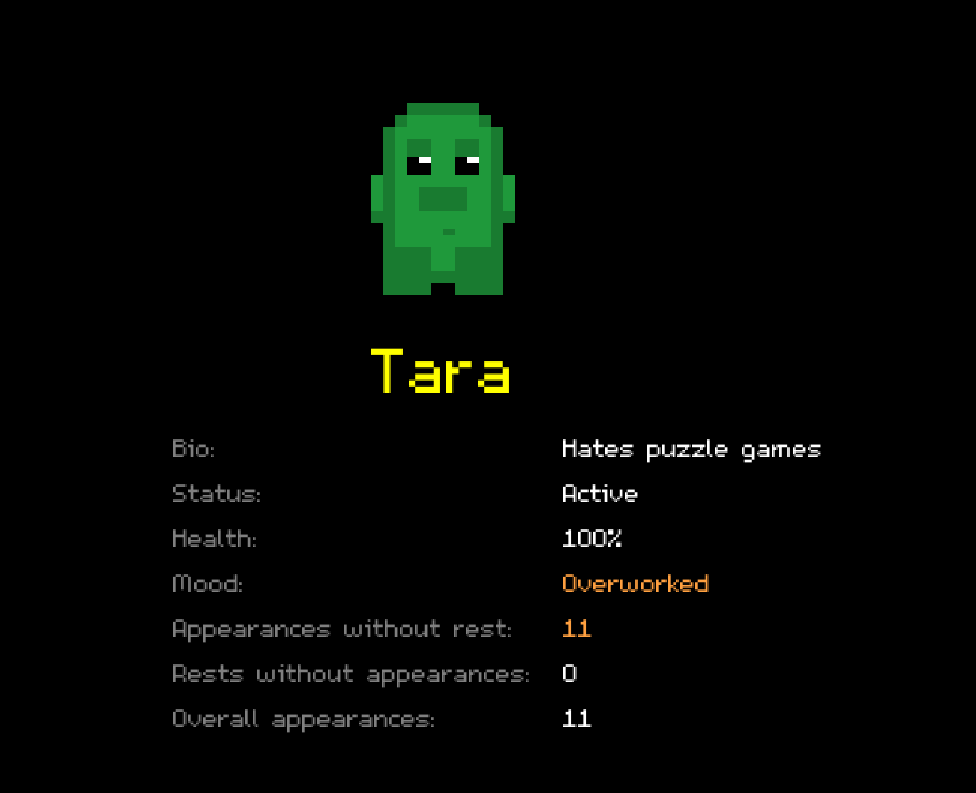 I even decided to give them all little personalities and moods that impact their performance in-game. If a Kell is overworked and tired their health drops more when they get injured! I probably spent way too long on this aspect of the game but I don’t regret it for a second. It was so much fun to work on and gives the game character and personality so it was all worth it.