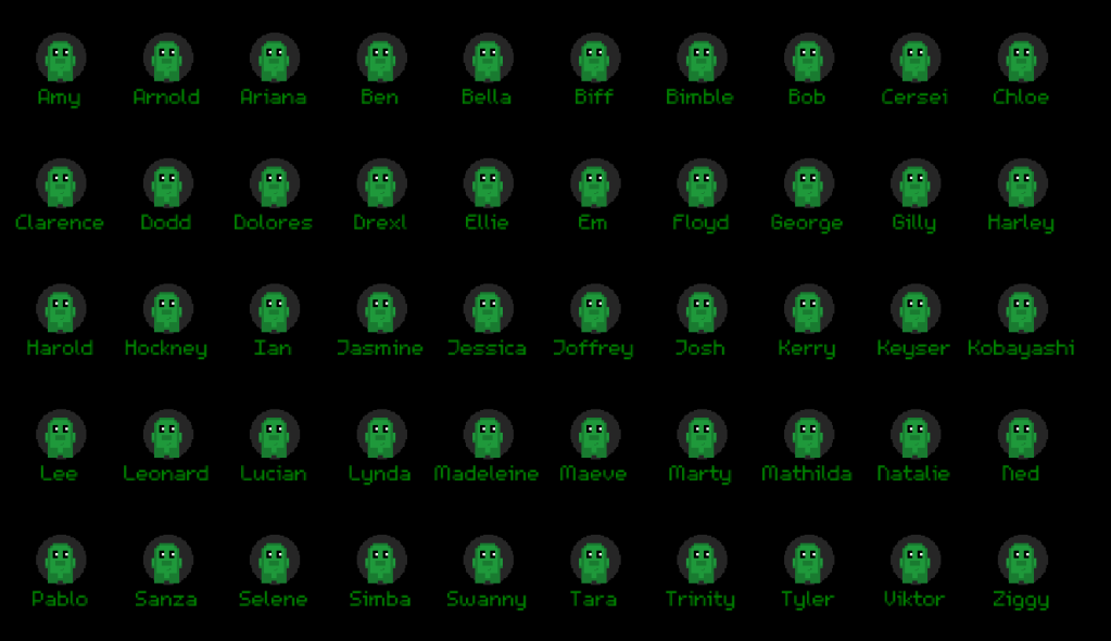 I’m particularly proud of The Kellective. There are 50 Kells altogether in the game but you start with only 3 of them and you have to find the rest while playing through all the levels. I decided to name all the Kells after friends and family as well which is a nice touch. This is what the Kellective looks like: